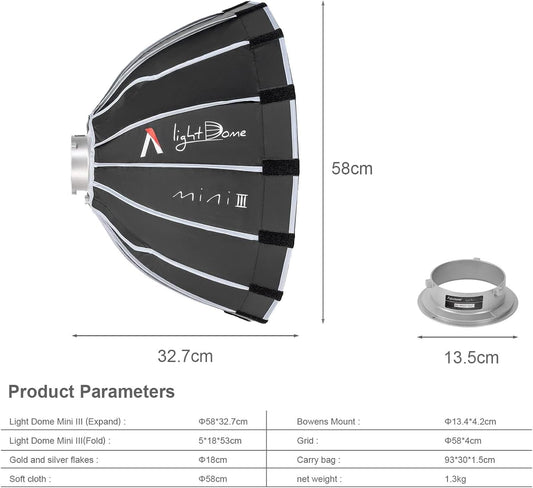 Aputure Light Dome Mini III Softbox,Bowens Mount Octagonal Softbox Quick-Setup Soft Light Modifier for Video Light Aputure Amaran 200/100/300c/150c/60d s/60x s