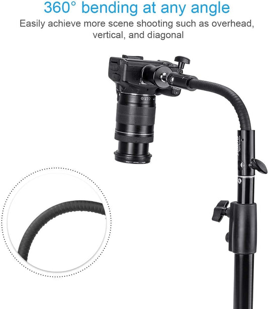 Fomito-RG-01 12.5 Inch/32cm Flexible Arm Extension Pole with 1/4-3/8in Converter Screw for Marco Ring Light/LED Panel, for Light Stand, Tripod, Monopod Photography, Max Load 5.5lbs/2.5kg-F0063