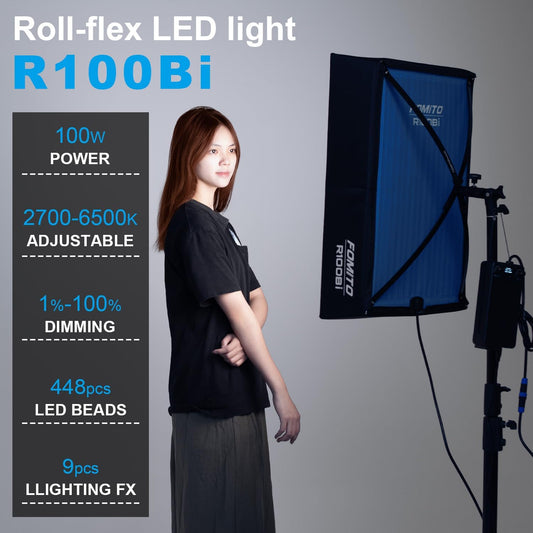 Fomito-R100Bi 100W Foldable Flexible LED Light Panel Kit Bi-Color Temperature 2700K-6500K + Softbox Diffuser + Honeycomb Grid Softbox + Remote-F0074