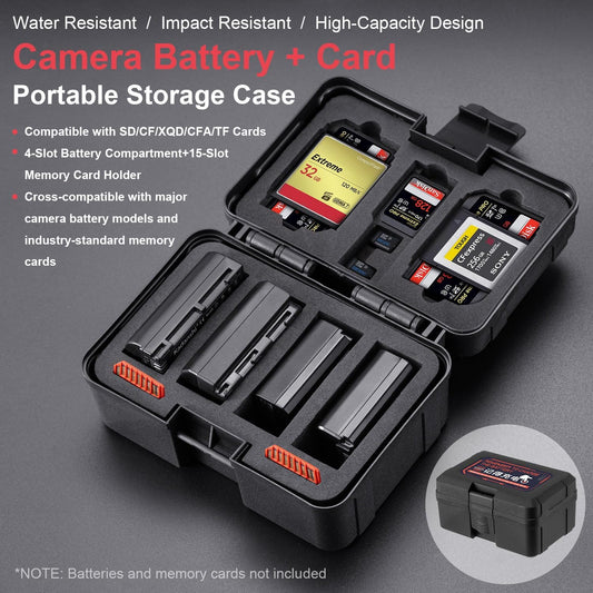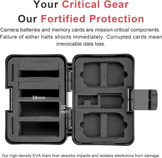 FOMITO Camera Battery Case & Memory Card Organizer - Holds 7 SD Cards 2 CFast 2 CF 2 Micro SD 2 XQD - Water-Resistant Shockproof Hard Shell Storage Box (Black Blue)