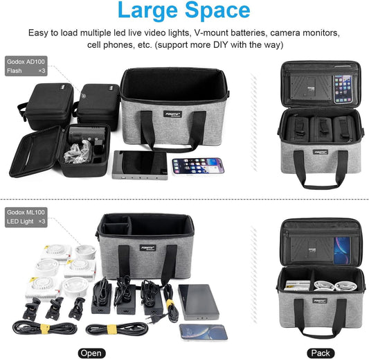 FOMITO-AB-20B Foldable Camera Bag for DSLR/Gimbal/Drone 35x21x20cm Shockproof Case Foam Compartments & Carry Handle-F0188