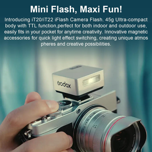 GODOX iT22 C/N/S/F/O iFlash TTL Camera Flash Light, 700+ Flashes & 1.5 s Recycling, 6 Stops (1/32 to 1/1 Power), Built in Battery with Magnetic Diffuser & Filter (Sliver, for Nikon)