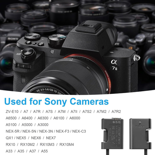 FOMITO-NP-FW50 Dummy Battery Decoded NP-FW50 Battery with Type-C Straight Line 3M Power Adapter Cable for Sony A6500 A6300 A6100 ZV-E10 A7 A7II A7RII A7SII A7R A37 A55 NEX-3N NEX-F3 RX10 RX10M4 Camera-F0095