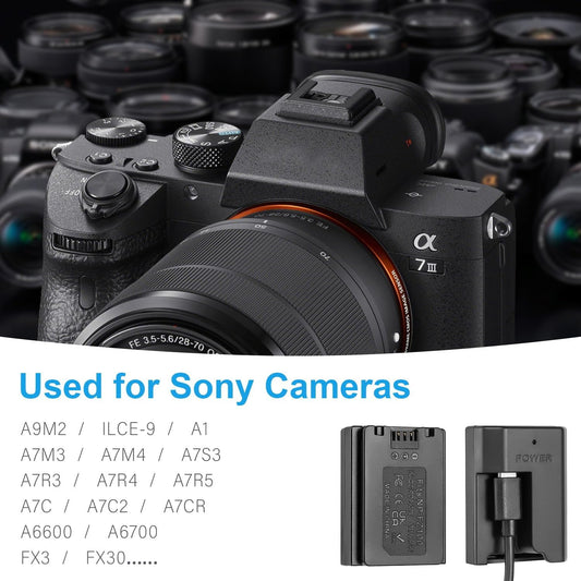 FOMITO-NP-FZ100 Dummy Battery Decoded NP-FZ100 FZ100 Battery Replacement with Type-C Straight Line 3M Power Adapter Cable for Sony A9M2 ILCE-9 A1 A7M3 A7S3 A7R3 A7R5 A7C2 A7CR A6600 A6700 FX30 Cameras-F0100