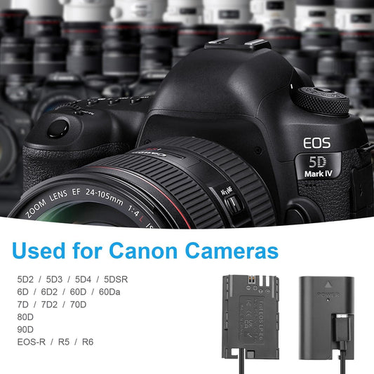 FOMITO-LP-E6 Dummy Battery Decoded LP-E6 Battery Replacement with Type-C Spring Power Adapter Cable for Canon 5D2 5D3 5D4 5DSR 6D 6D2 60D 60Da 7D 7D2 70D 80D 90D EOS-R R5 R6 Cameras-F0077