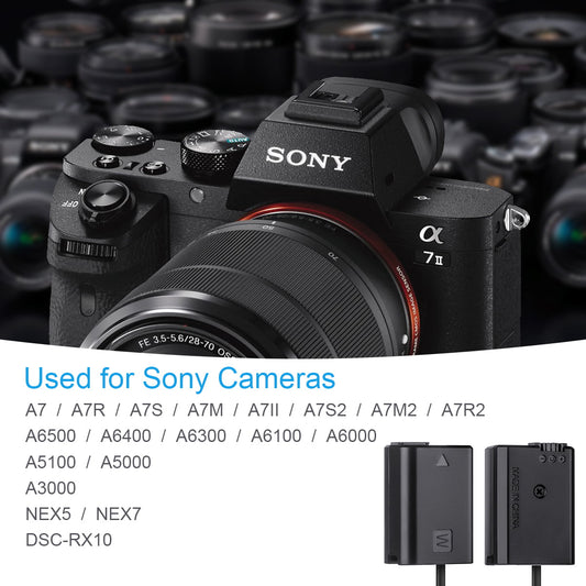FOMITO NP-FW50 CONTINUOUS POWER SUPPLY FOR SONY ALPHA CAMERAS - FW50 AC POWER ADAPTER WITH A7III DUMMY BATTERY - COMPATIBLE WITH Sony A7000 A6500 A6400 A6300 A6100 A6000 A5100 A5000 A7 A7II A7RII A7SII A7S A7R A35 A37 A55 RX10 Camera-F0093