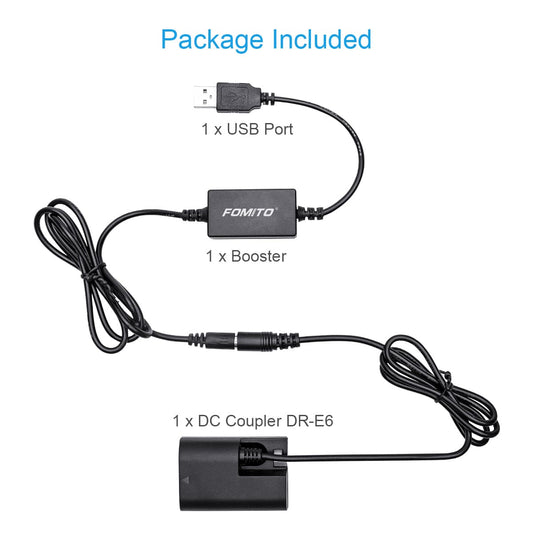 Fomito USB DC Coupler ACK-E6 Charger LP-E6 Dummy Battery for Canon EOS 5D2 60D 70D 80D 90D EOSR