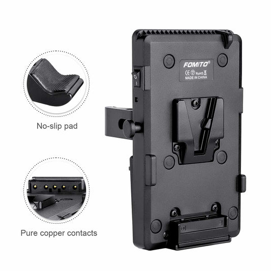 Fomito V-Lock V Mount Battery Adapter Plate with Super Clamp for Lighting Stand,Tripod, Support Rod, with D-TAP/DC/USB Power Output for Camcorder, DSLR Camera, LED Video Light, Monitor, Microphone
