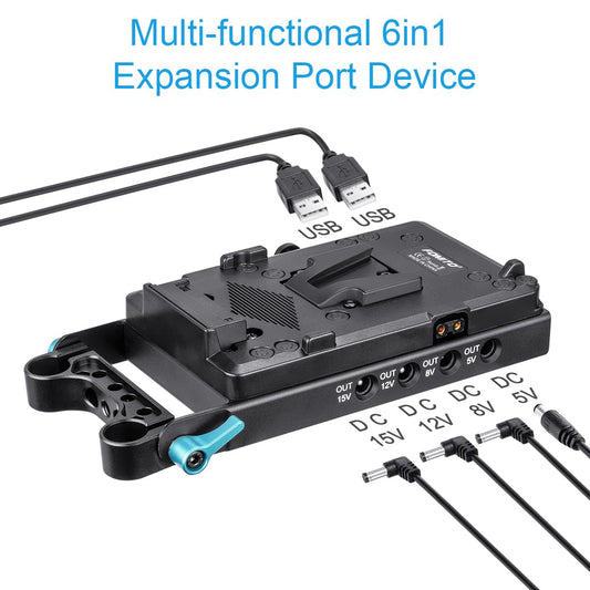 Fomito Battery Adaptor 6 in 1 Expansion Port For V Mount Batteries Camera Bracket Camera DSLR Cage