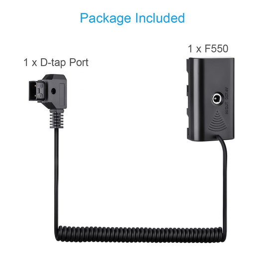 Fomito NP-F970 F750 F550 Dummy Battery with DC 7.4V to D-TAP for V-Mount BP Battery, Camera Monitor Neewer F100 FEELWORLD FW568, LED Light CN160 CN216 YN300 II YN-600 W260, for Sony Camcorder