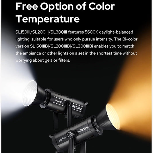 Godox SL200Bi IIIBiBi-Color 215W LED Video Light, CCT 2800-6500K CRI 96, TLCI 97, 95400 Lux@1m, 9 FX Effects Bowens-Mount Studio Lights with RC-A6 Remote for Studio and Film TV Production