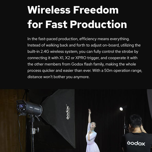 GODOX QT400IIIM 400W High Speed Studio Flash Light GN65 1/8000s HSS 0.01-0.9S Quick Recycling Time Built-in 2.4G Wireless X System with 40W Modeling Light Bowens Mount for Wedding Portrait Photography