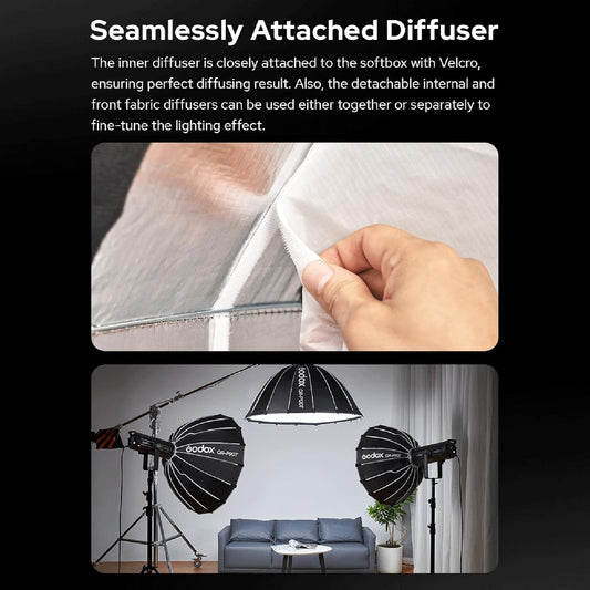 Godox QR-P60T 60cm/23.6in Quick Release Parabolic Softbox Professional Foldable Softbox with Standard Bowen Mount & Diffusers for Photography Studio Photography (60cm/59in Softbox)