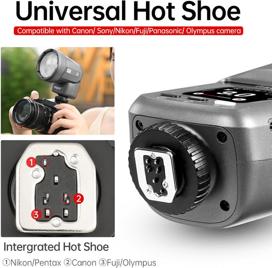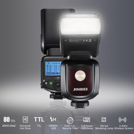 HI-900 Professional TTL Camera Flash 80Ws GN60, 1/8000s HSS, 360° Rotating Head, 2500mAh Li-ion, 3W LED Modeling lamp, 2.4G Wireless Master/Slave for Canon/Nikon/Fuji/Panasonic