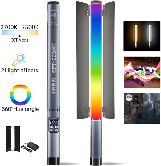 JINBEI EFT-220 RGB Handheld LED Light Stick, Light Wand Photography with APP Control & Metal Barndoor, Built-in 3000mAh Battery, Portable Dimmable 2700K-7500K, TLCI>98, 21 FX Lighting Effects