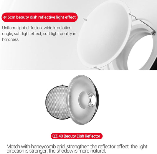 JINBEI 15.7"/40cm Aluminum Standard Reflector Beauty Dish with White Diffuser & Honeycomb, Bowens Mount Studio Strobe Flash Light
