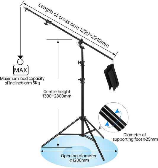 JINBEI 16.4FT 500cm Heavy Boom Arm with Sandbag Light Stand 22LBS Bearing Rotatable Adjustable Aluminum Holding Arm Load M-3 for Studio Photography Video