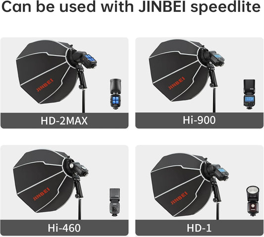 JINBEI 20"/50cm Octagonal Softbox Quick Folding Quick Set Up Octabox Softbox with Light Diffusers/Honeycomb Grid/Bag for HD-1 HD-2MAX Hi900 Speedlite