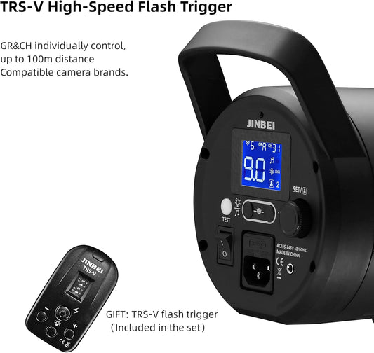 JINBEI SPARK-400D 400Ws GN66 Studio Strobe Flash Light,Recycle Time in 0.1-0.9 Sec,Built-in 2.4G Wireless with Bowens Mount LED Modeling Lamp Photography Flashes, Include 2.4G Wireless Trigger