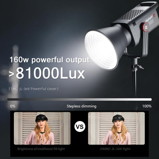 JL-160 160W COB Led Video Light, 5500K±150K Daylight Bowens Mount,Ra>97 SSI>91, 9 Lighting Effects,Continuous Output Lighting for Studio/Photography/Video Recording with APP Control