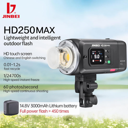 JINBEI HD250MAX 220Ws 2.4G TTL Flash Speedlight, 1/8000 HSS, 12W Bi-Color Modeling Light, Monolight Strobe Flash for Canon, Sony, Nikon, Fuji, Olympus, Panasonic
