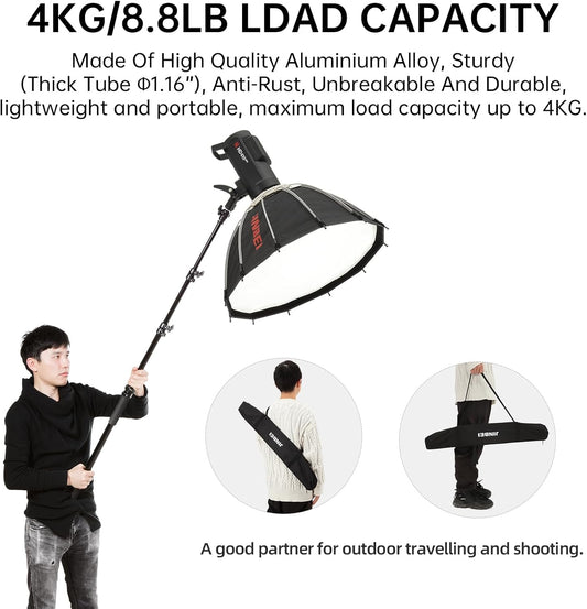 JINBEI HD-230 7.5ft / 230cm Handheld Portable Light Stand with 1/4" 3/8" Adapter Boom Pole Telescoping with Easy Twist Locks Support for Studio LED Panel Speedlite Reflector