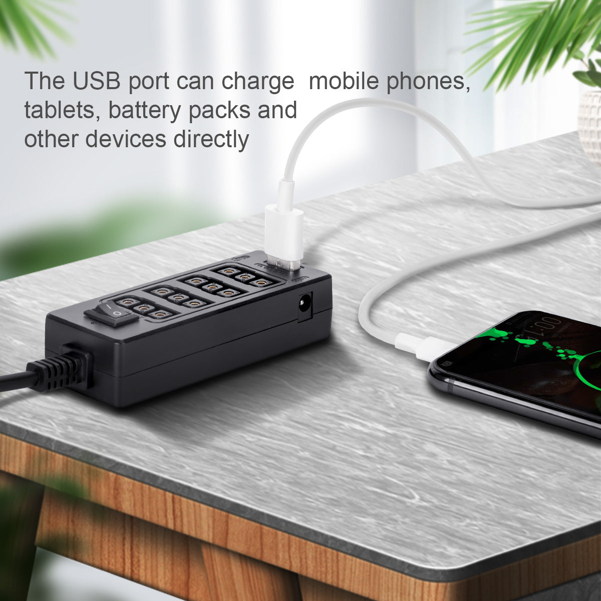 There is a 5V/2.1A USB interface for your smartphone, and other usb devices.