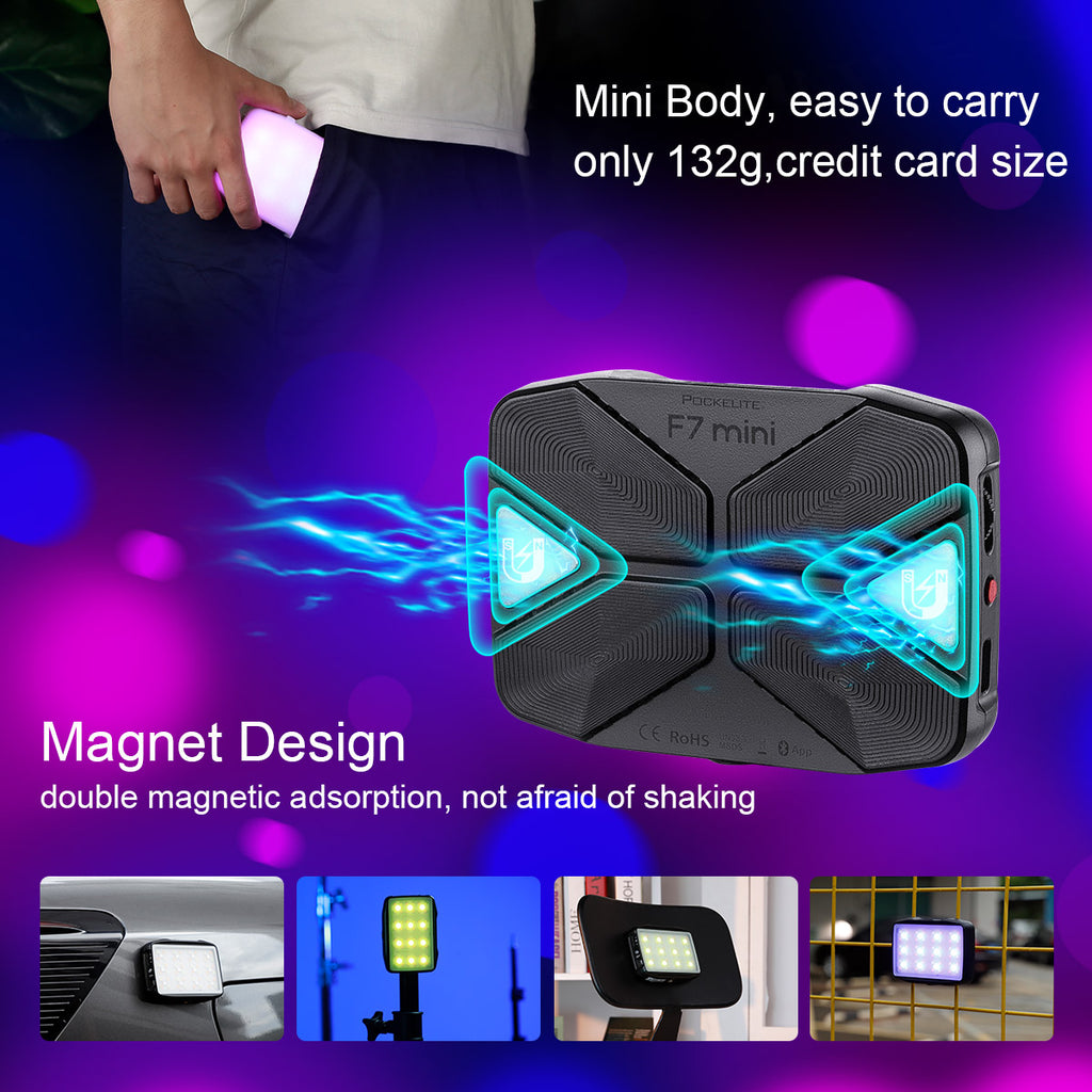 The FalconEyes PockeLite F7 Mini is a RGB LED light, the 10cm light area makes it portable and compact, with a weight of less than 0.2kg which could stay in your pocket to provide illumination for filming wherever you needed.