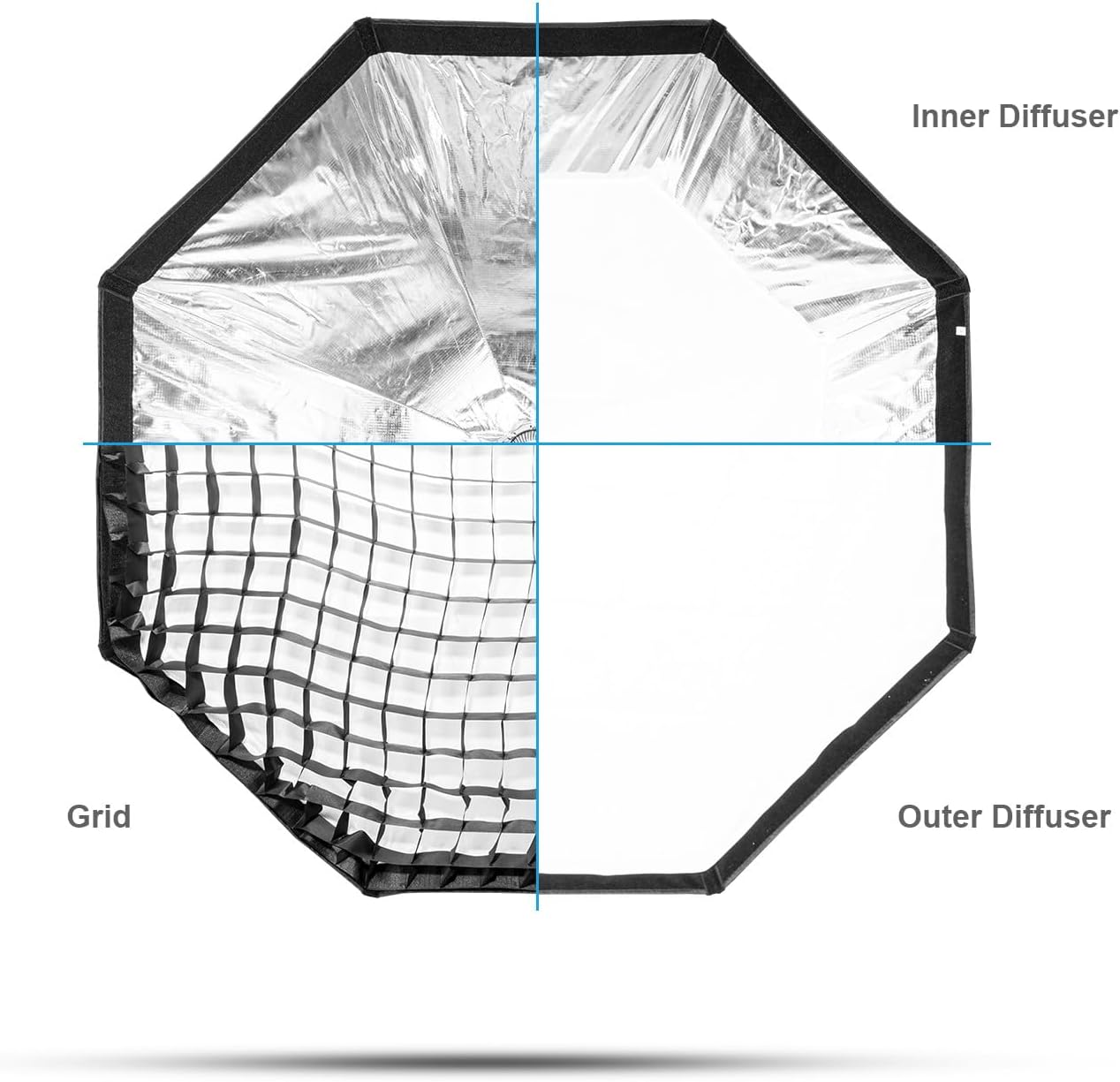 The includes a 45° fabric light control grid to help fine tune your cinematography and control the spread of your light.