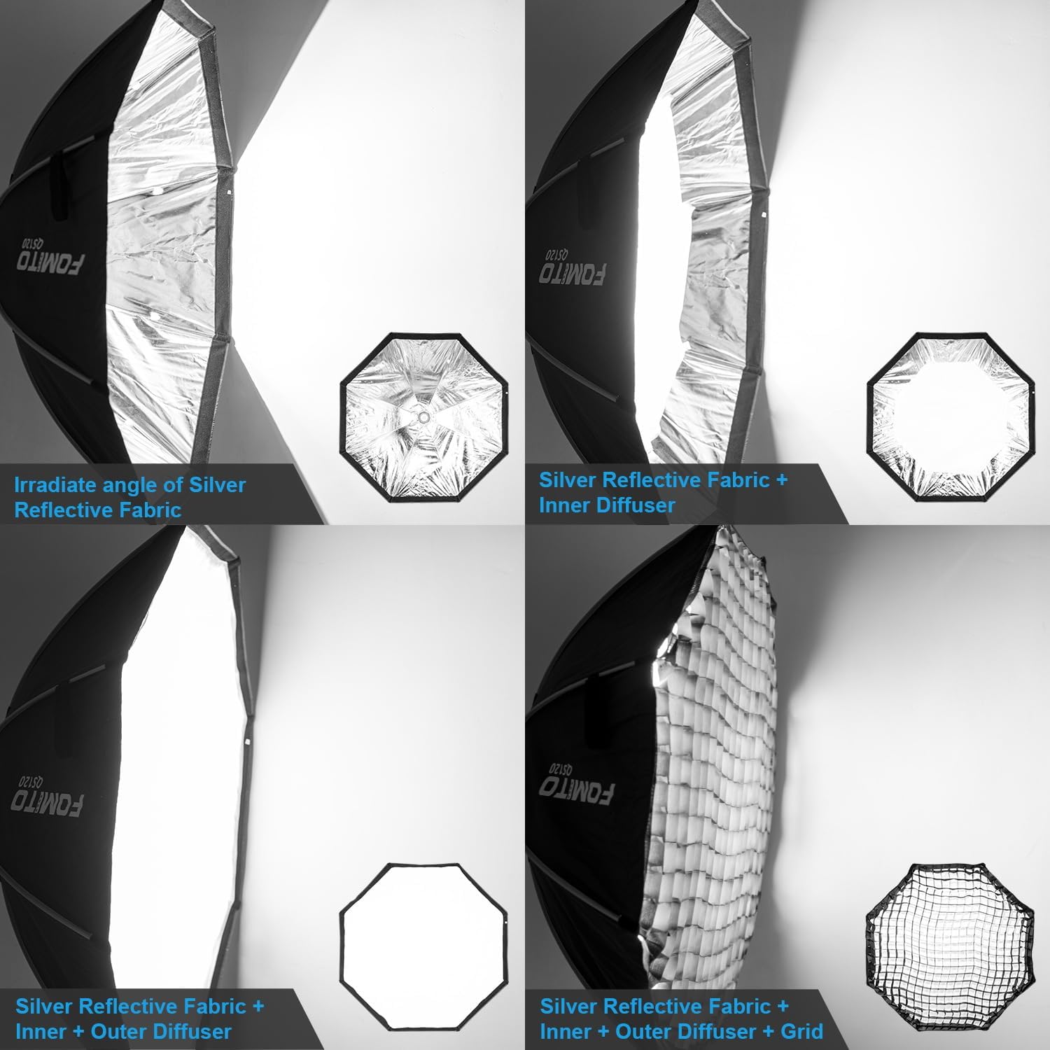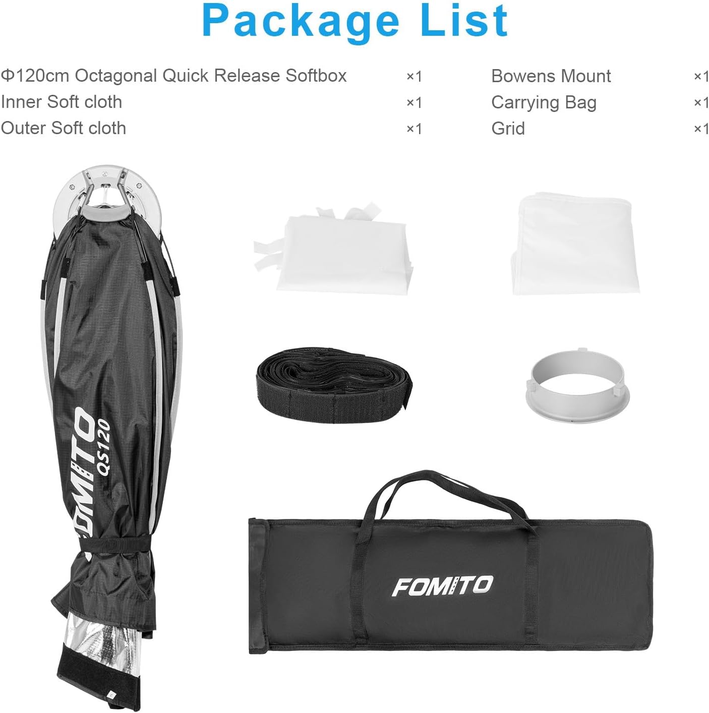 FOMITO 47.2"/120cm Octagonal Softbox, Quick Release Bowens Mount Softbox with Honeycomb Grid, Light Diffusers, Bag for Godox SL-60W SL60IID SL150R SL300R