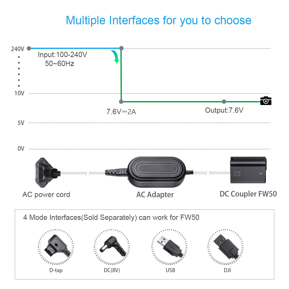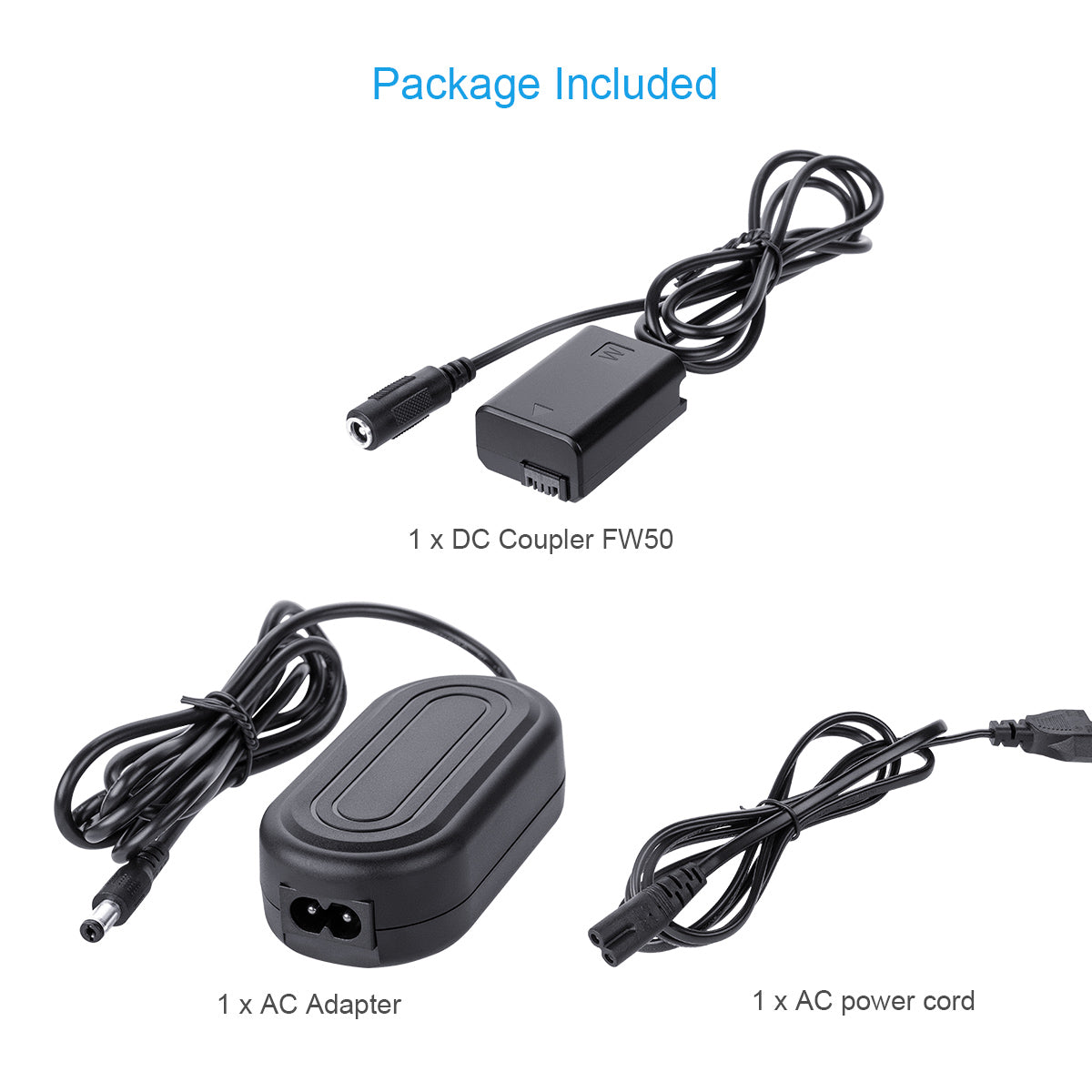 Fomito AC-PW20 Camera AC Adapter Charger Kit with NP-FW50 Dummy Battery for Sony Alpha NEX5 NEX7 A7