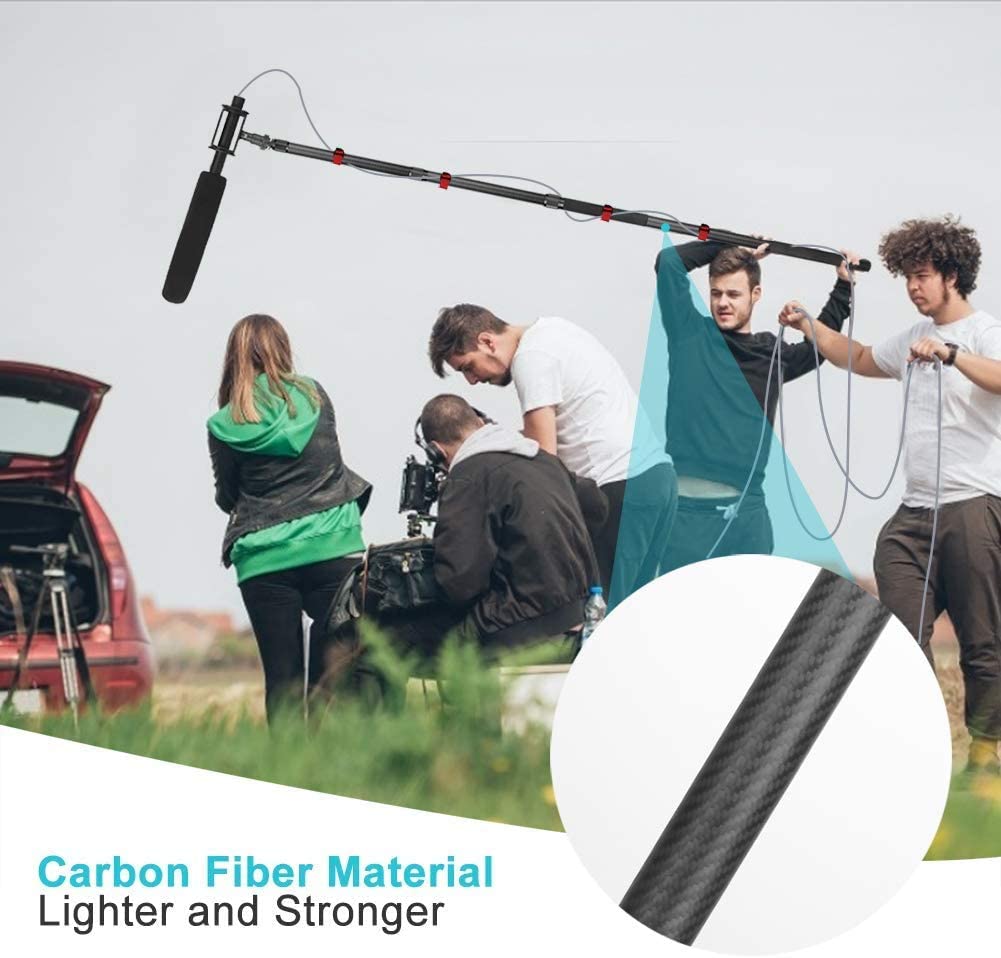 Carbon Fiber Lightweight Boom Pole Ideal for field and Studio recording Lightweight easy to carry around and record on the go for shoots , Great for interviews, small crew documentary, ENG, EFP,video production, Field documentary, TV and film applications.