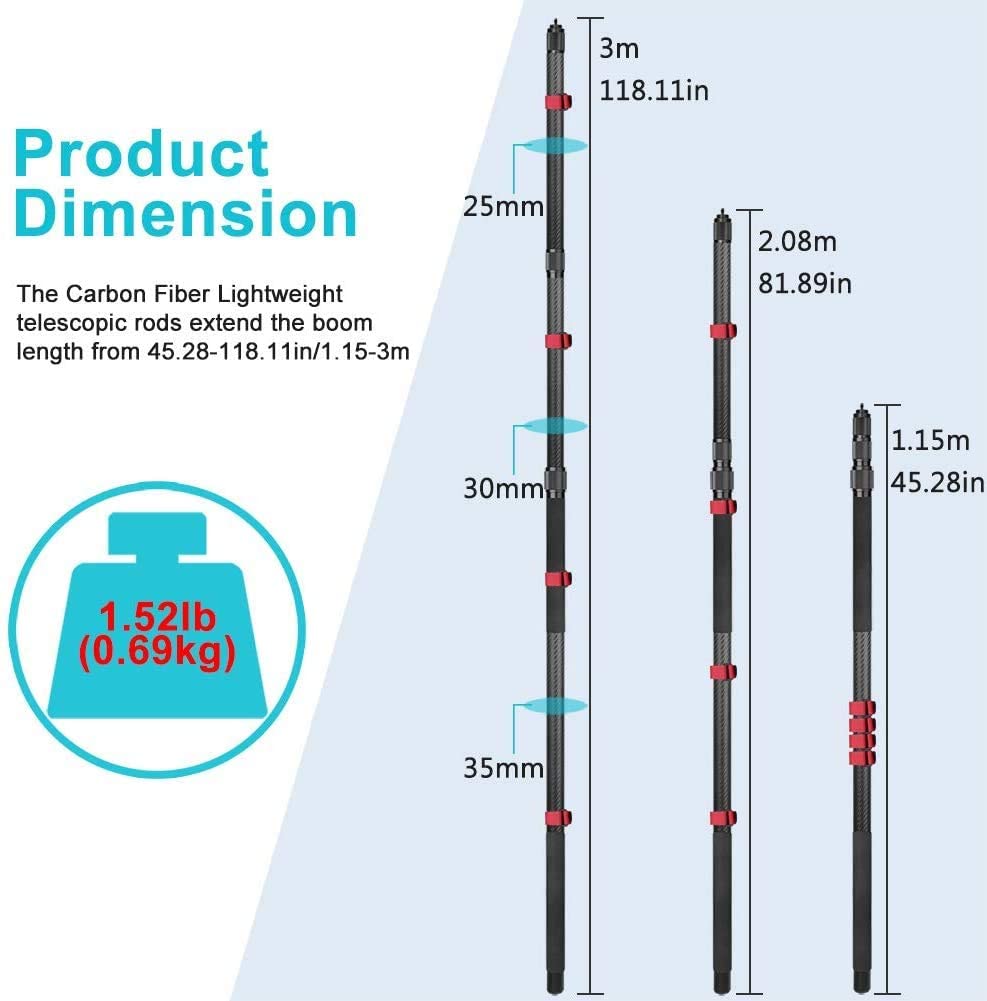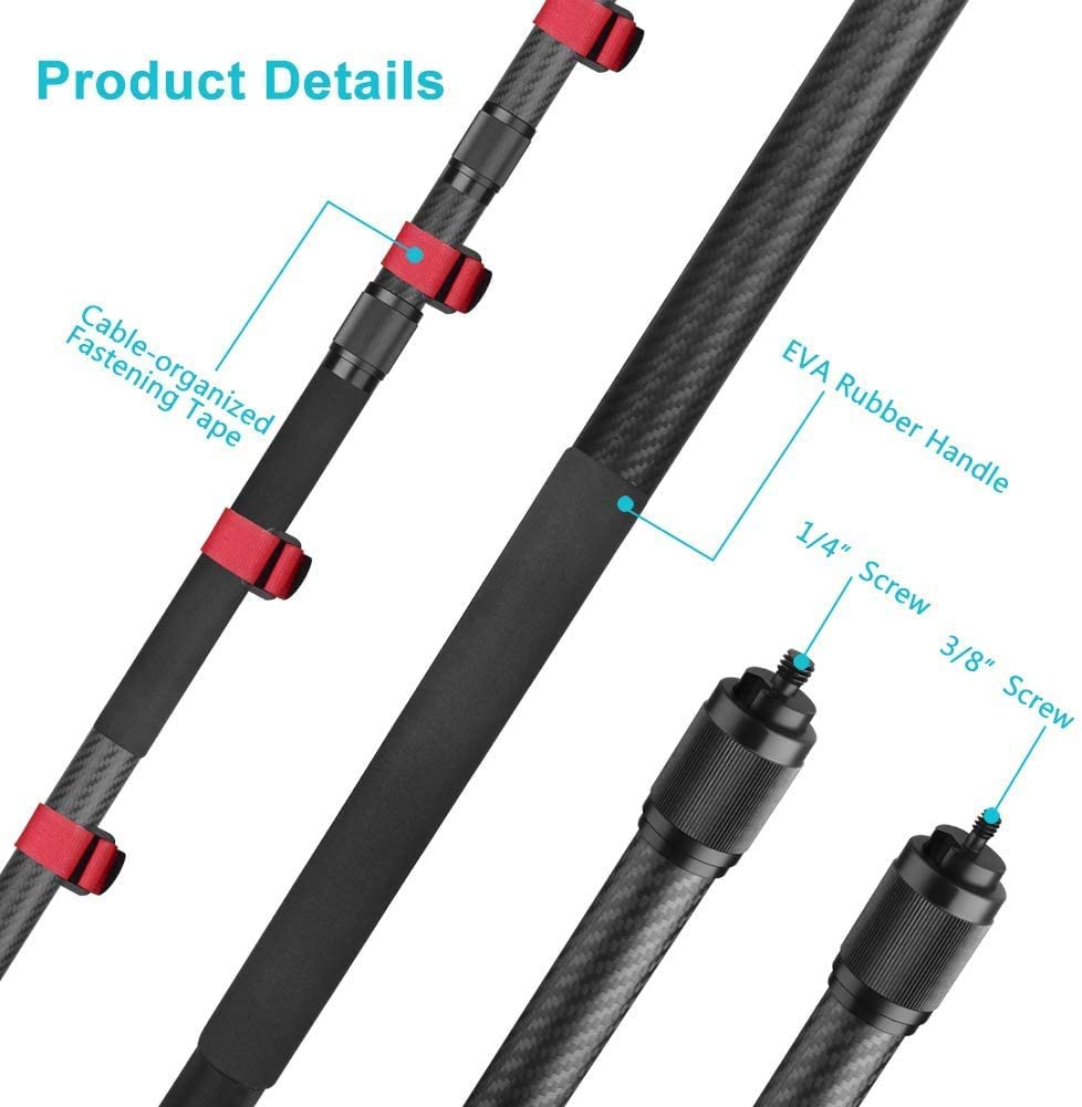 The Portable Mic Boom Pole by the soft and flexible foam hand grips, reduce operator fatigue associated with longer shoots. Made of Carbon Fiber, light weight make it easier to hold in hand and carry around. Better choice for long-time work with it. Durable and well-balanced.