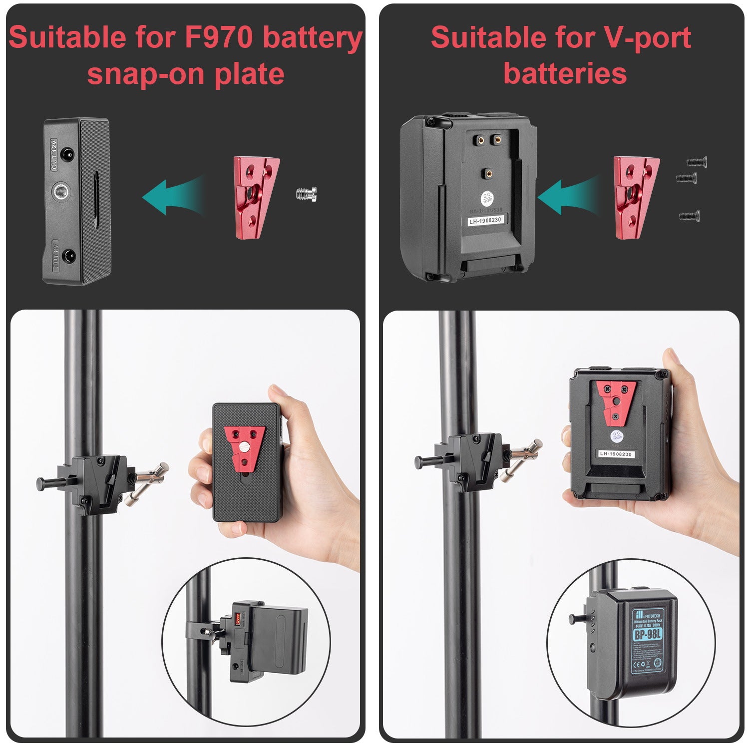 - Standard size, the mount is compatible with original V-Lock Base Station quick release plate.