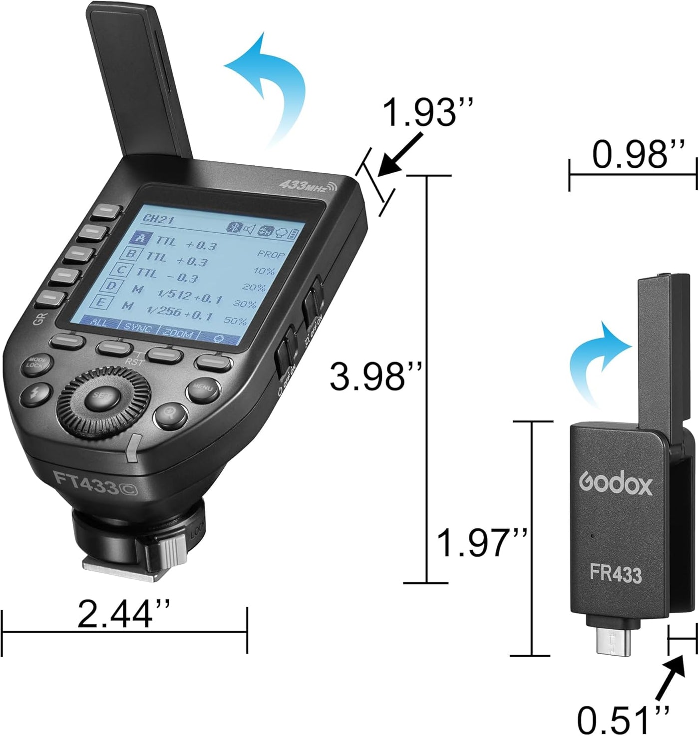The FT433 Trigger features a quick-release hot shoe lock for fast and effortless mounting and dismounting, saving time and effort. Easily pair with the latest Godox outdoor flash units by plugging FR433 Receiver into the Type C port.